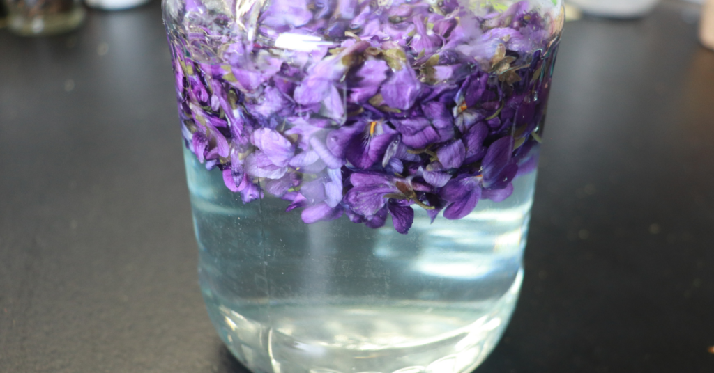 Bylo to snadné. Očistit květy, uklidnit se po panickém záchvatu, že je fialka jedovatá, najít vhodnou sklenici, očistit květy pod proudem tekoucí vody a nasypat do sklenice. Převařit vodu. Čekat nekonečně dlouho až voda zchladne. Zalít květy přece jen pořád horkou vodou. A dát sklenici do tmy.